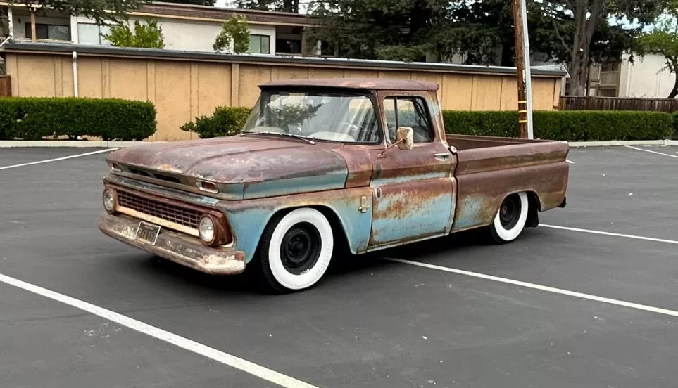 Alright, I’m laying it out here. You know, I’m going to cut to the chase on this Patina thing. I gather from most of my esteemed readers’ contributions that the entire “patina thing” is overdone and not in favor. I’d have to agree. Today, however, we have a 1963 Chevrolet short wheelbase C-10 pickup that is claimed to have “authentic patina“, courtesy of a life spent in California. Now, this truck has a bunch of other stuff going on, too, but the Patina hogs the visual impact. And that being the case, let’s see if California patina differs from general, everyday patina…Located in Menlo Park, California, this low-riding Chebbie is available here on eBay for a current bid of $12,300 with the reserve not yet met.