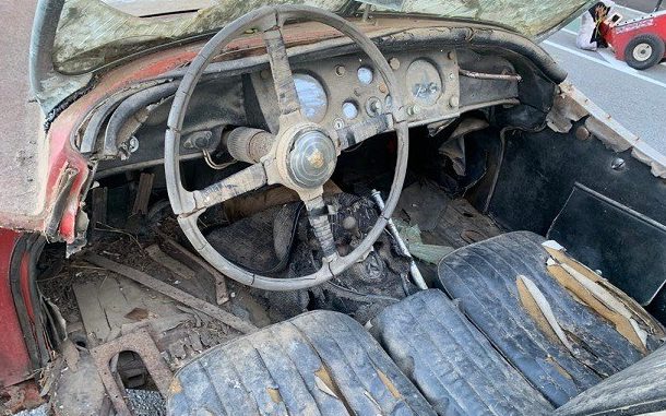 Normally a car with a beautiful bearing, this XK140 appears to have arisen from the deep – seriously, it looks as if it was in the hold of the RMS Titanic along with the missing 1911 Renault. The interior, in particular, is a giveaway, it is completely dilapidated. It’s truly hard to wrap your head around everything that is wrong; floors, seats, dash, instrument panel, cowl, steering wheel, windshield, it is all very rough – how unfortunate.