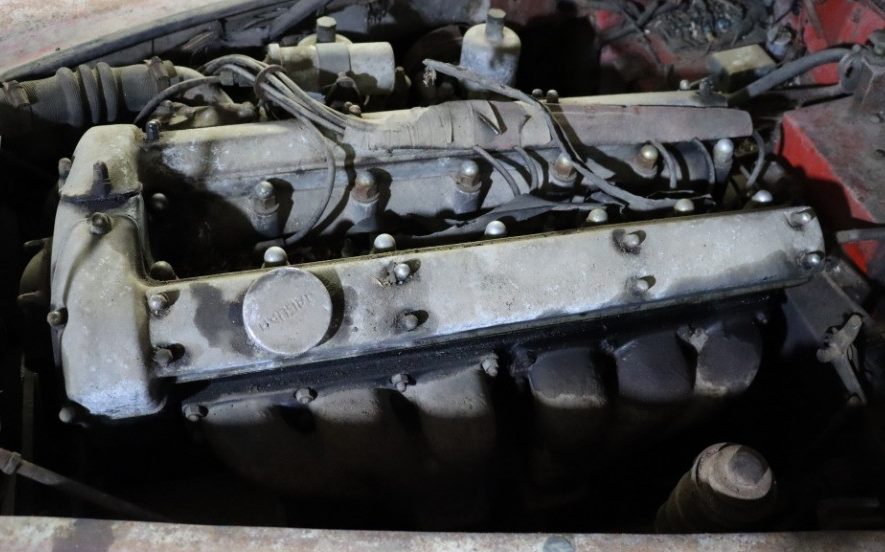 Power for the XK140 comes about via a 3.4 liter DOHC, in-line six-cylinder engine that generates either 190 or 210 HP, depending upon the cylinder head employed. There is one included image of the engine, and from what can be seen, it appears to be intact but it’s a safe bet that it has not run in many moons. This car is advertised as being a matching number specimen but it would be nice to know if the engine will at least turnover. Depending upon its internal condition, the matching numbers claim may no longer matter. The transmission is more than likely a four-speed manual and there was an overdrive option available too. Interestingly, an automatic gearbox was available in 1956.