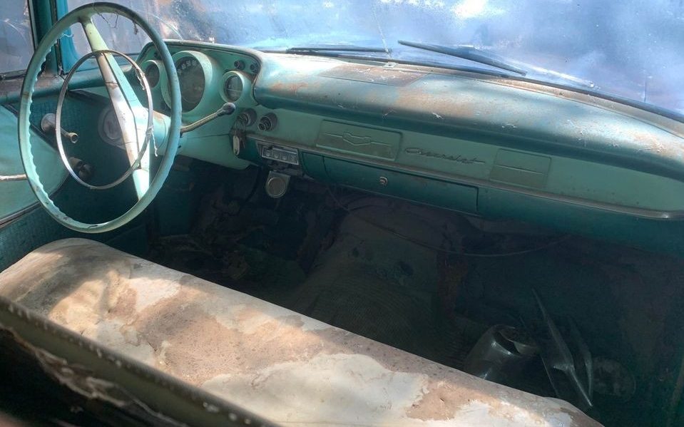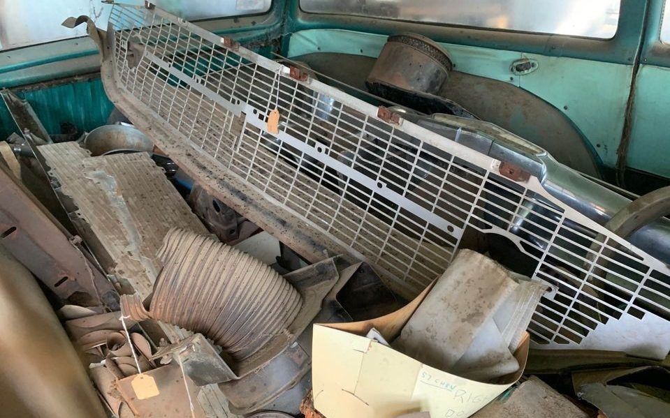 Here you can see the grille and other various parts are located in the rear portion of the wagon. The ad does say that “bumper front and most Chrome is there.” Hopefully, that is true because brightwork for these cars can be very expensive. The only other parts mentioned in the ad are regarding the drivetrain. Unfortunately, there are no photos of the 283 cubic inch V8 that is mated to an automatic Powerglide transmission.