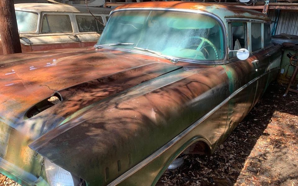 The other wagon is a 56 Dodge. This Chevy looks surprisingly solid, Might make a good project..