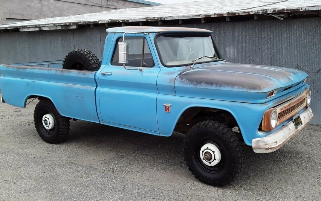 This 1964 Chevrolet K10 is an original California survivor 4×4. It has less than 53K original miles and can be found here on eBay with a current bid of $12,800. After spending most of its life in Northern California it is now located in Nampa, Idaho. It has amazing sun-kissed patina and is a little out-of-the-box being a 4-wheel-drive version of the popular Chevrolet pickup from the mid-60s. Take a look at this survivor and see what you think.