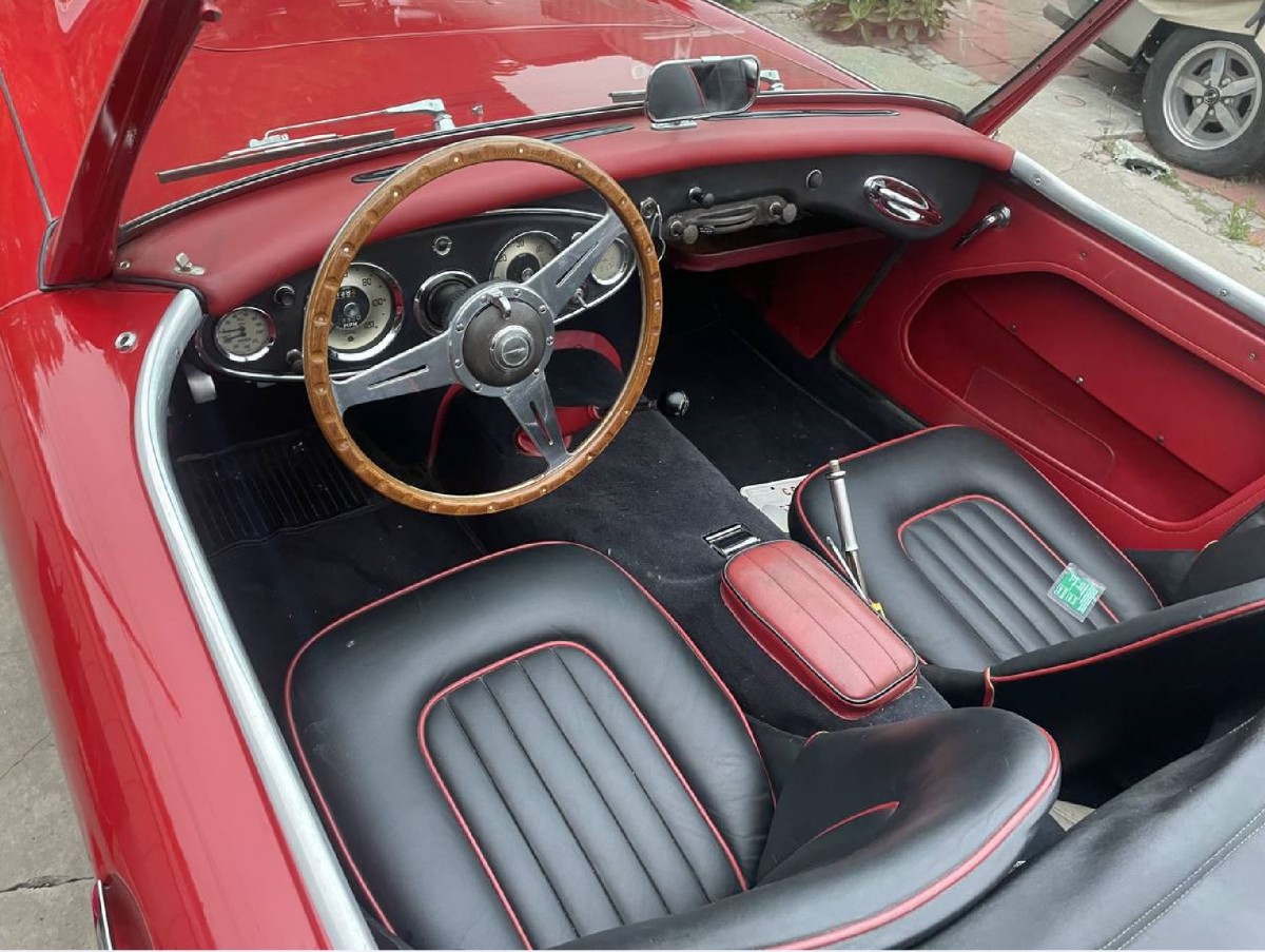 This Healey presents impressively in Colorado Red, although there is evidence that it has undergone a partial repaint at some point. While the exterior paint is shiny and consistent, there is some peeling around the edge of the hood close. It is difficult to assess how bad this is from the photos, but it is worth investigating. The panels are as straight as an arrow, with no problems or issues. Most of the gaps are tight and consistent, although the trunk lid does sit up a little bit on the outer edges. One of the most significant issues to consider with classics like this is rust. The usually prone exterior surfaces like the lower quarter panels, doglegs, and rockers look clean. The owner provides no information on the state of the vehicle’s underside, but if it has lived most of its life in California, there is cause to be quietly optimistic. The black soft-top is in excellent condition, with no rips or tears. It fits tightly and should provide effective wet weather protection. The chrome shines beautifully, and the redline tires on the spotless wire wheels add the perfect finishing touch to this classy classic.