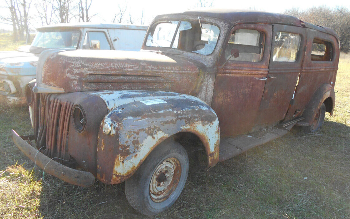 There would be almost enough parts in my bone pile to make this driveable although I’m at somewhat of a loss as to what I would do with it. It would be great to have the Ford version of the burb but I would prefer to have it on a regular panel body. I’m not too fussy about communicating with my passengers via intercom. There’s not a lot of difference between the ‘42 and the ‘46 models other than the ‘42 uses a pot metal Ford script on the hood sides.