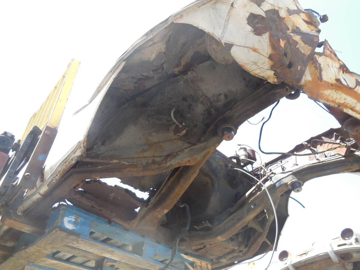 This view shows that the frame may not have been irreparably destroyed by this car’s apocalyptic shunt, or even the subsequent (most likely outdoor) storage. However from below we can fully reckon the number of rare components required to put this “car” on the road again, including but not limited to the entire drivetrain, steering, suspension, wiring, and electrical systems not to mention dashboard, interior, heating and cooling parts, instruments, and so on. What do you see here? Scrap by the pound or foundation for future restoration?