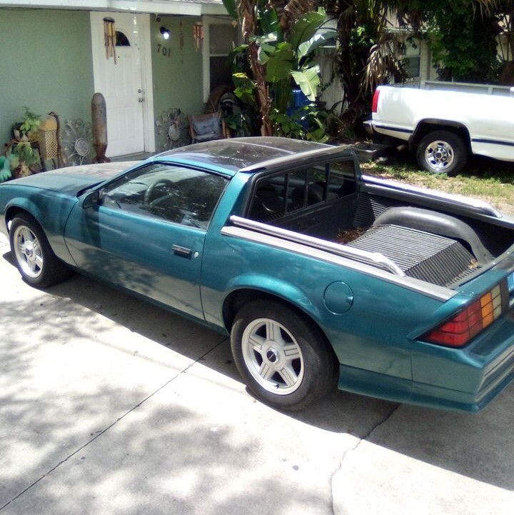 This interesting transport began life as a third-generation Camaro, which was in production from 1982 to 1992. They were the first Camaro’s to offer “modern” fuel injection, the TH-700R4 4-speed automatic transmission, a 5-speed manual transmission, and hatchback bodies. They managed to be 500 lbs. lighter than their predecessors, which should have equated to better handling and more speed. We don’t know the specific model of this once-was Camaro, and V6 engines were standard equipment except in the IROC-Z. The alternative was a 305 cubic inch V8 (except a 350 could be had in the Z).