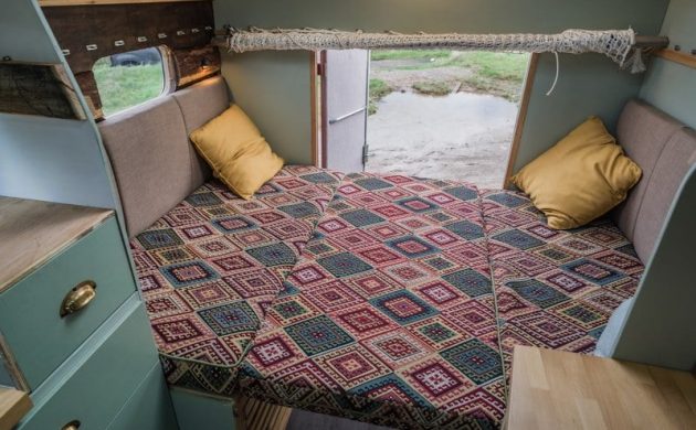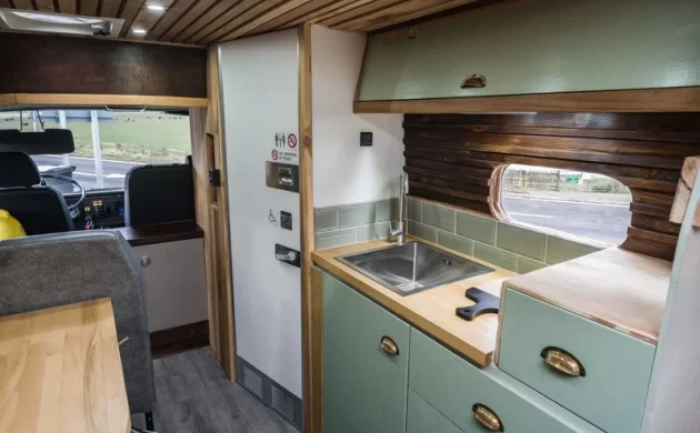 I have infinite respect for builds like these, but the price tag always seems eye-watering (and yes, I realize if you’re handy, you can do this yourself, but that represents months of time and loads of lost weekends – no thank you.) This is where true ingenuity kicks in, as you will have to perform some deconstruction of the original layout to get a setup like this installed. Featuring custom countertops, a backsplash, and appliances including a sink and fridge, this Mercedes mobile home has everything you could want for life on the road. The listing notes the builder used Canadian Cedar throughout the interior.