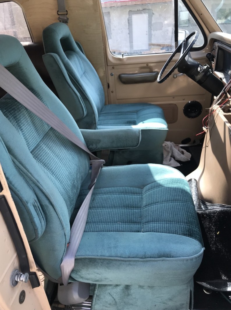Considerable effort and money look to have been spent to get this van ready to be sold. The checklist of services performed includes a tune-up and fluids change, new batteries for both the engine and passenger cabin, and wiring is done for a solar-power system that can be installed by the buyer. Other changes and improvements would fit into the amenity’s category, such as:
