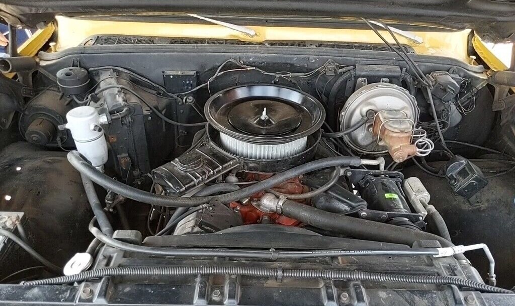 Pop the hood and you’ll find the largest of Chevrolet’s V8 engines, the 454 cubic inch motor. Just like with Chevy’s autos, they were detuned for lower emissions and had catalytic converters for the first time. We’re told the truck runs well and the factory air conditioning cools things down nicely thanks to a lot of new parts. The Chevy will sound tough going down the road as the seller has added glass packs to the exhaust system. It will roll down the road quite well, too, with new tires at all four corners.