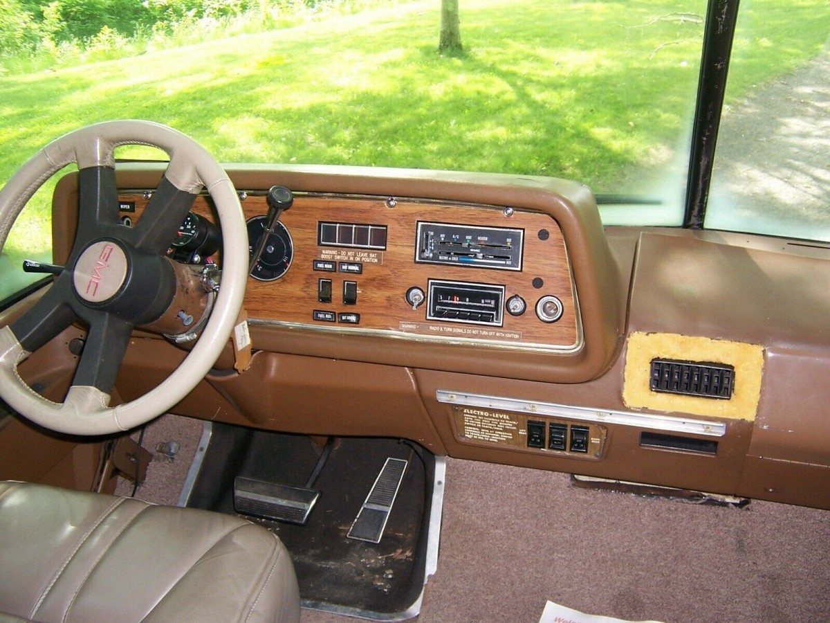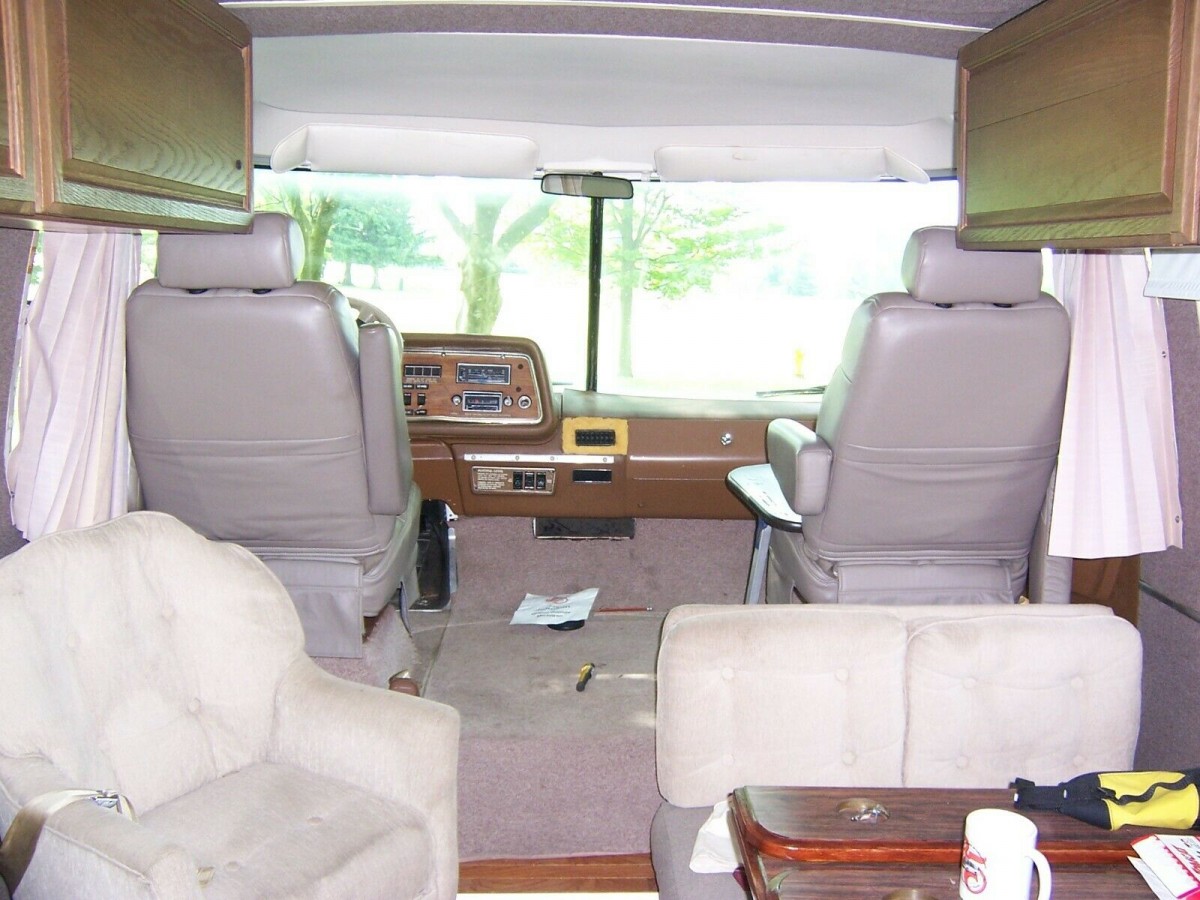 Inside is clean, but not perfect. The motorhome belongs to the seller’s father, who he claims has owned several of these front-wheel-drive GMCs. The cabin isn’t perfect – it’s certainly nothing like the yellow-and-green one we featured a few days ago – but it’s not funky, either. Some alterations have been made, such as the original furnace being removed with a free-standing LP unit plumbed into the bus tank in its place. The generator runs intermittently and while the A/C works, it’s not cooling the driver’s compartment. Other recent maintenance that’s been crossed off the list includes a new water heater, front wheel bearings, and lower ball joints, and gas tank cleaning/repainting.
