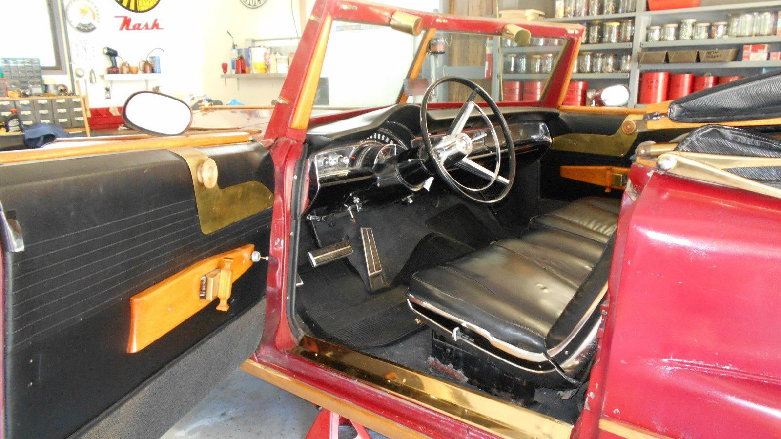 Here’s a “before” picture. Ah, you say, but Jamie, this isn’t in the eBay ad. Correct. However, it is in this ad that I found after a little creative use of search engines. I can’t see two creations like this, so I’m pretty comfortable in saying it’s the same car. That listing has the price at $1,000 and says the car was recently purchased from an estate. Looks like a nice anticipated profit for some cleanup work, don’t you think? This prior ad does give us the VIN, which we can use this page to identify the donor car as a 1966 Newport/New Yorker/300 2 door hardtop originally equipped with a 383 V8 and a two-barrel carburetor. It also includes some detail pictures of some of the wood and brass “jewelry” the car is adorned with.