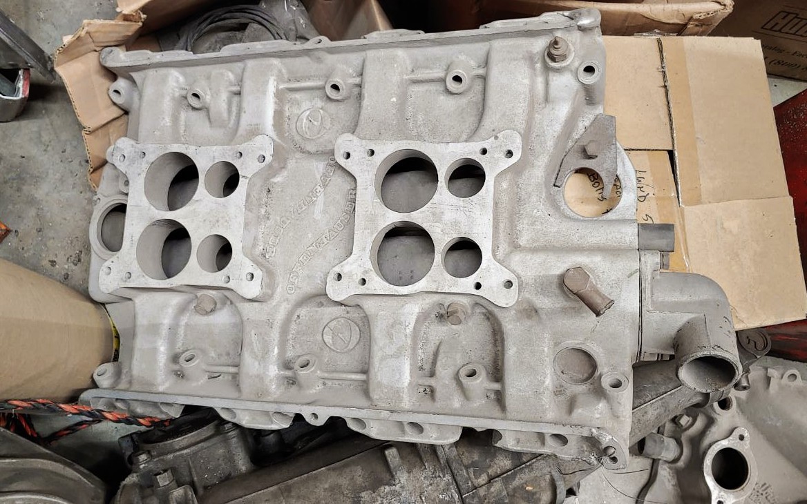 This particular intake is part number 5608, listed in their catalog as “Dual Quadrajet Low Profile Manifold” for Ford 352-390-406-427-428. They also made a high rise version of this intake for the Ford FE, and both the low and high rise versions of these intakes for the 361, 383-400 Chrysler’s. Offenhauser also made a line of single Q-Jet intakes for an assortment of engines, including both the Cleveland & Windsor 351, the Chrysler 413-426-440 wedge, and others including two for AMC V8’s.