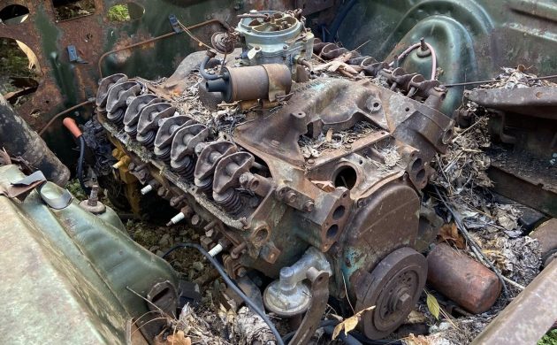 Per the cowl tag, this forlorn Charger began life with a 383 cubic inch “Magnum” V8 with a 4-barrel carburetor and an automatic transmission. It’s one of 758 copies so equipped that year. That engine is long gone, having been replaced by a “regular” 383 with a 2-barrel, which has since been liberated from many of its parts. The seller has some of the bits and pieces that you don’t necessarily see in the photos.