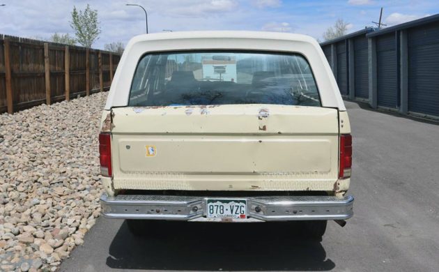 As you can see, this second-generation Bronco has been stripped of most of its trim and is ready to take it to the next level. I’d go back to bone stock original spec, but I’m boring as you know. Or, almost bone-stock, the interior would get some nice Bronco fabric rather than vinyl, and carpet rather than black vinyl. There is a lot of rust to work with first, but if you can do the welding yourself, it will be a fun project – says the guy who hasn’t gotten rid of rust on a truck in over four decades, cutting sheet metal to fit, welding it in with an oxy/acetylene torch, grinding, filling, priming, painting, etc. The wheel covers look Chevy-like, but Ford did offer some similar ones, although these don’t show up on the brochures I looked at. I would keep them and keep the reasonably-sized tires and wheels.