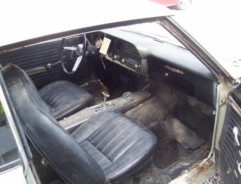The interior appears mostly complete and frankly, it isn’t in bad condition. A good cleaning would go a long way on this car and maybe even make the interior usable! Unfortunately, as noted by the seller, the bucket seats are incorrect and probably from a Camaro. The seller is including a partial set of correct bucket seats. The seller also notes that although the interior is in place, it is worn and much will need to be replaced.