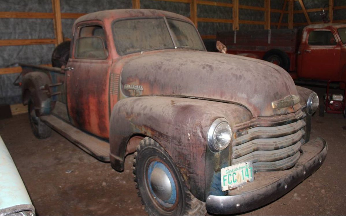 According to the seller, the Saskatoon winter of 1971 took the engine of this first year, Advanced Design (1947-1955) one-tonner out of commission thanks to a cooling system freeze. With a reported 40K miles (or is it kilometers?) it has been parked ever since. This 3800 looks about how one would expect, it shows no sign of modification for a specific purpose though the seller mentions that this truck has been modified with a dumping bed, ostensibly for grain hauling; he adds “nothing butchered here“. And that explains his further comment of, “Includes NEVER USED ORIGINAL TAILGATE“; it was probably removed way-back-when for the dumping bed modification. The original Windsor Blue finish has given way to a light skim of surface rust but the body panels still appear to be sound with no sign of major rust and the seller claims, “Has solid cab corners- no rust, and solid door bottoms- 2 problem areas for these“. There are no included images of the cargo bed but it is suggested that the wood will, not unsurprisingly, require replacement. Based on this Chevy’s exterior appearance, it has not spent the last 50 years totally indoors.