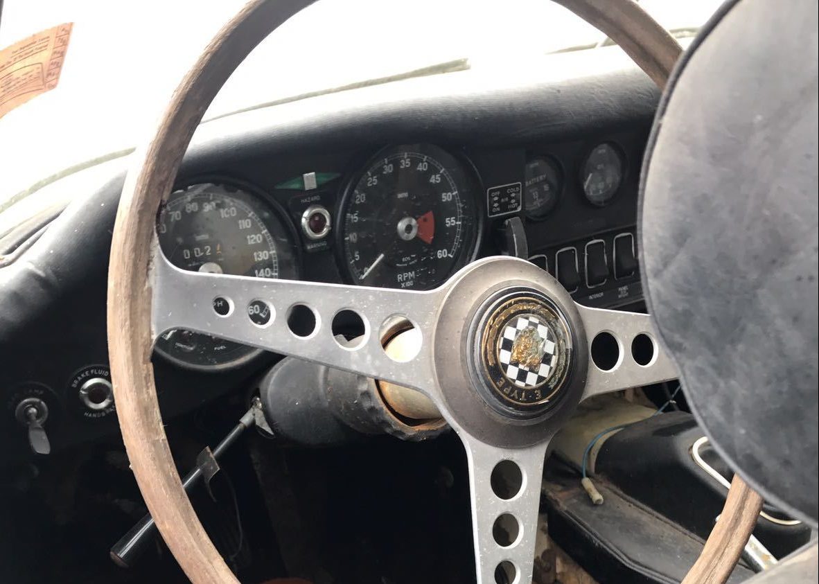Turn signals and taillights were also revised, moving beneath the bumpers on the Series 2 cars. What is it about so many vintage sports cars wearing snow tires when they come out of the barn? We’ve seen more than a few Jaguars and 356s shod with aggressive rubber for winter time travel; kudos to previous owners if they were less adverse to risk than we are today. This E-Type also sports a period luggage rack which looks perfectly at home on the trunk lid. No mention is made of any rust issues and no major areas of concern are evident to me in the photos.