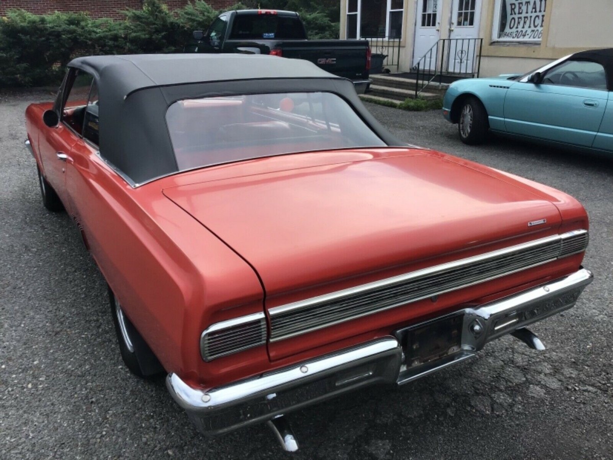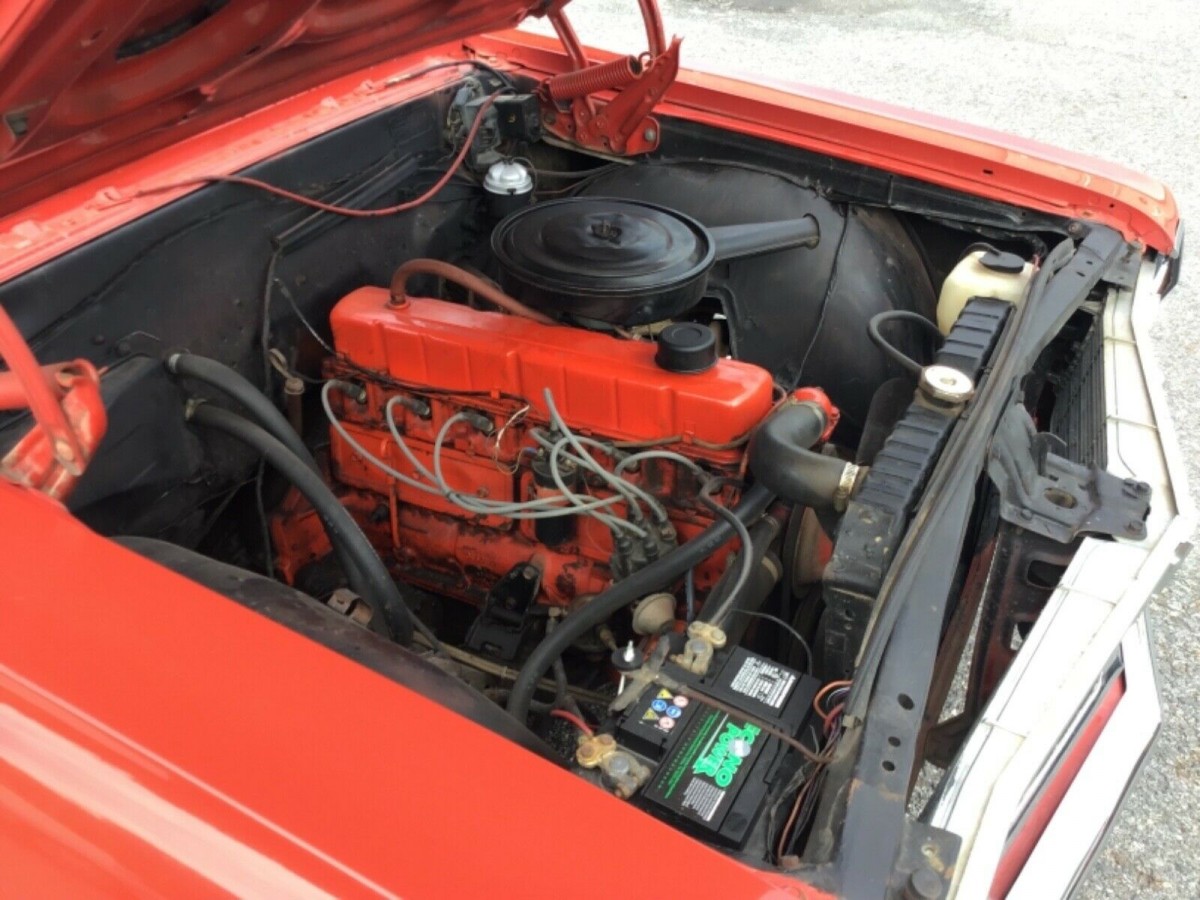 Looking now at the shiny machine before us, we see what looks like a rather nice example of a low- or mid-level red-on-red car with black soft top, and what looks to be velour on the seating surfaces. We’re told that it is powered by a 230-ci straight-engine, mated to a two-speed automatic transmission, and the odometer reads 12,000 miles. The seller also says that the top works manually, the car runs and drives, and the body is very nice in general. Thankfully, we’re given a decent amount of good pictures and an honest-sounding description. We’re not sure why the seller listed it as a Pontiac Acadian, but that’s not for us to judge.