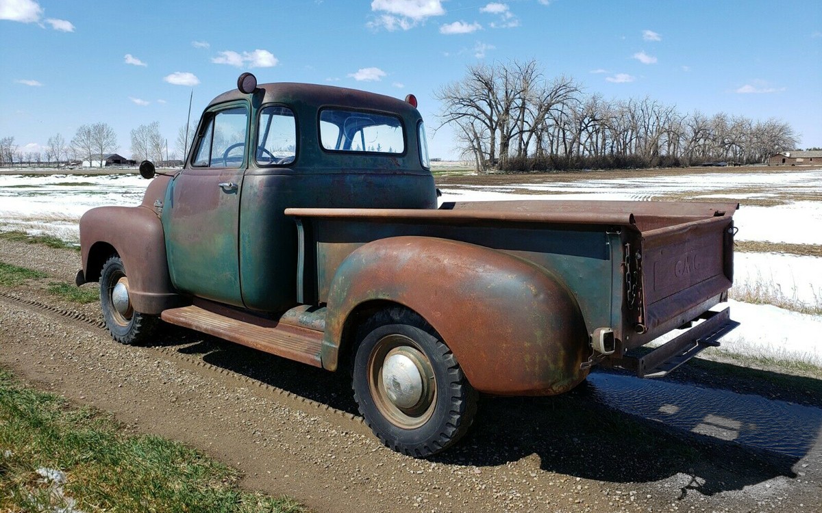 Most of us love old trucks, especially when they look like they were used but not beat, maintained but not babied. This 5-window 1953 GMC 9430 shortbed pickup can be found here on eBay in Sweet Grass, Montana which borders Canada. There is no reserve and the current bid price is just over $5,900.