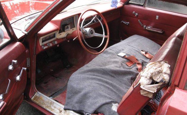 This Plymouth likely had few options in ’65, the most notable being a TorqueFlite automatic transmission (with the shifter now on the steering column rather than pushbuttons that dated to the 1950s). Chrysler’s venerable 225 cubic inch “Slant-Six” is at work here, and some mechanical tinkering has been done to make this car into a daily driver at 65,000 miles (or kilometers?). The work includes the brakes, fuel pump, and the sending unit. The carburetor has been rebuilt, the motor tuned up, and the valves adjusted.