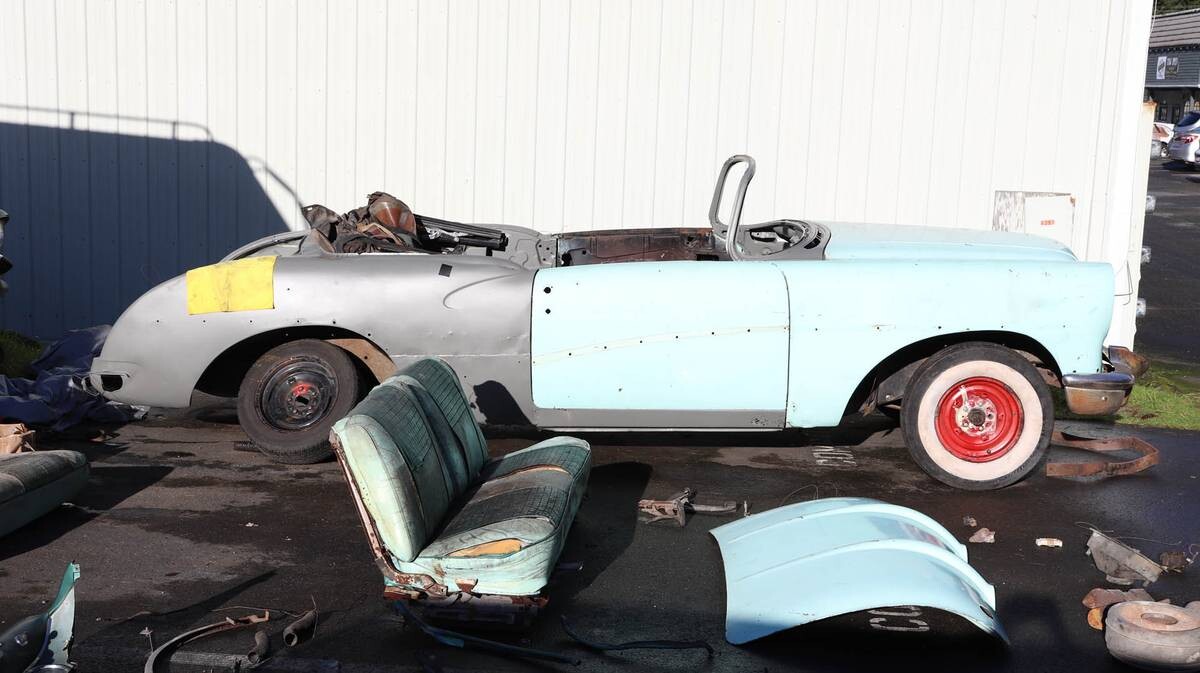It looks like the metalwork damage at the rear deck lid is from the removal of the “C” pillars from the conversion to a convertible from a 2 door.