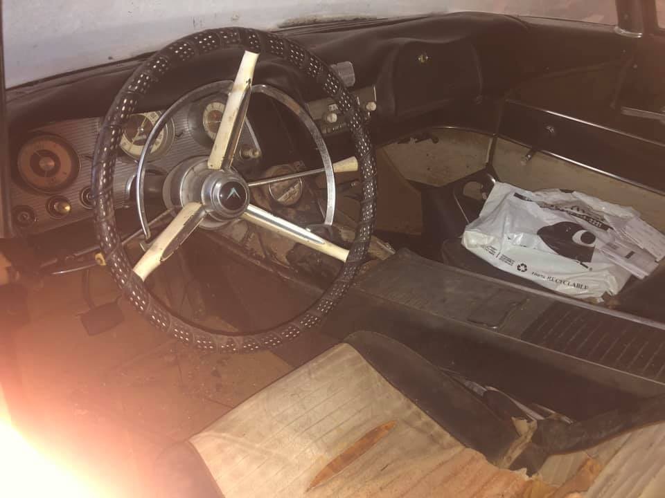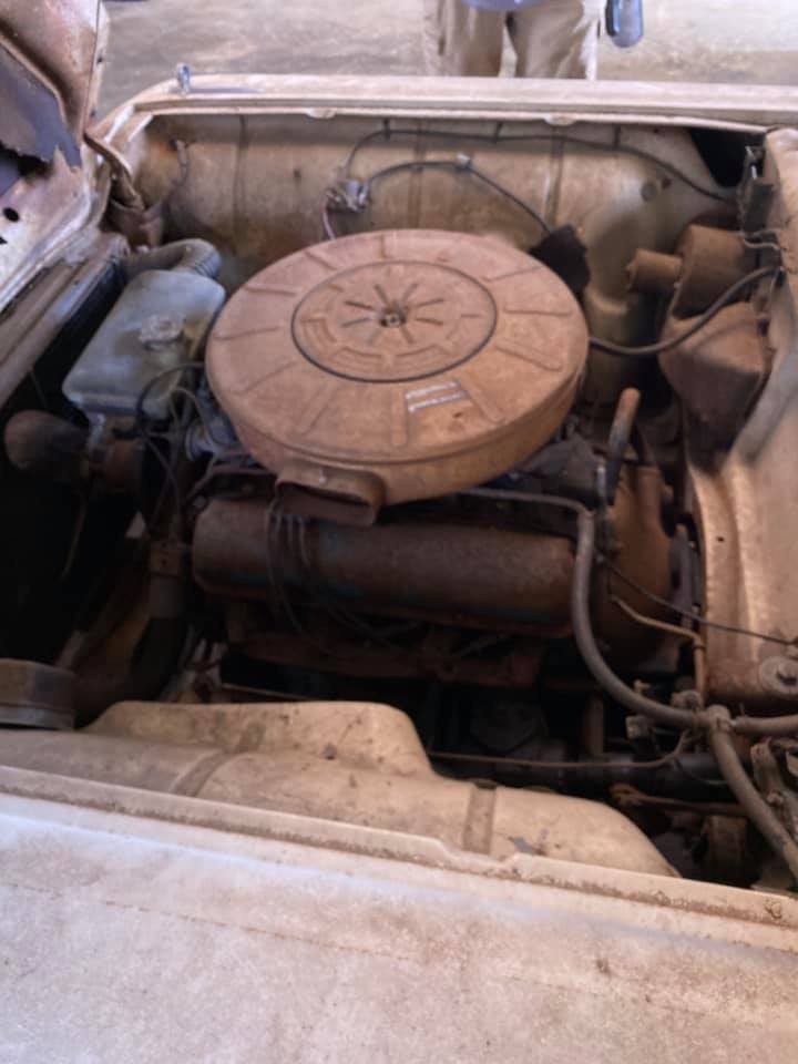 Interior-wise, the car looks to be original and dirty, too, but without too much damage other than a tear here and there in the seats. Before ordering a full-interior kit, a good cleaning will tell you just how far you have to go. I was surprised to see a column-shift for the Ford-O-Matic since the car has a console and I thought it would be a floor shifter. Or a push-button operation like the first Edsel’s, which were still in production when this car was made, although Ford couldn’t give them away.