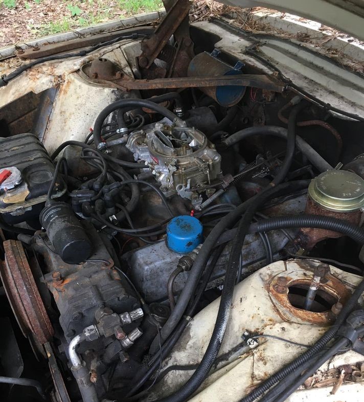 Though it looks like a long-forgotten yard car with a blue tarp to serve as protection, we’re told that it actually runs, and the automatic transmission shifts properly. The carburetor looks brand new atop the 390. The brakes will need servicing before trying to move this car any further than the nearest trailer. Things are said to work properly, like the power windows and sequential turn signals (thanks to a new electronic sequencer).