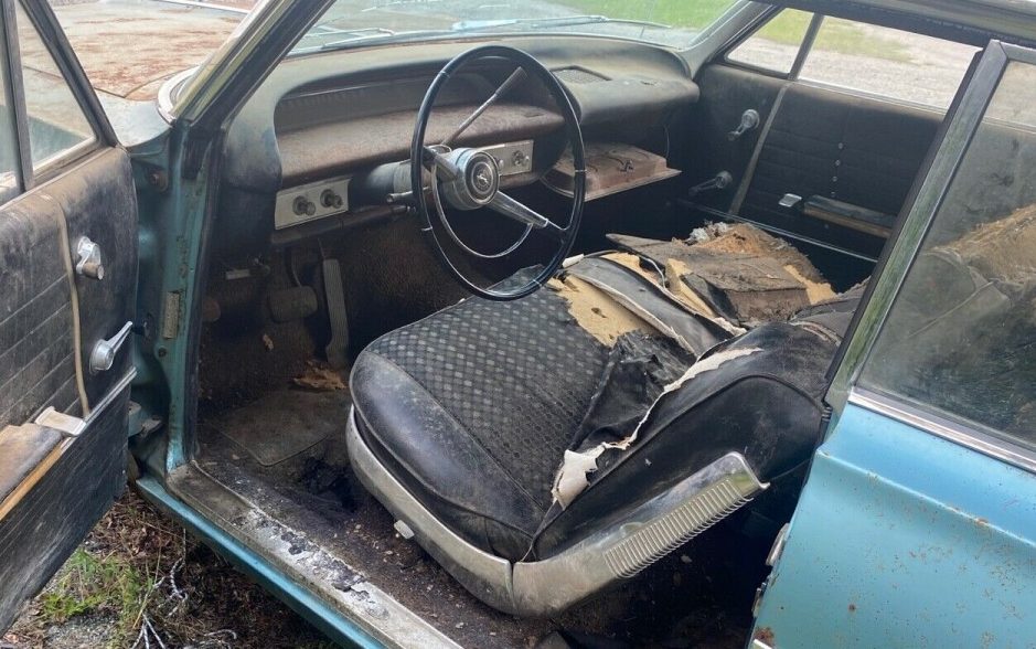 There are no images of the supposedly operable engine but the fender V badge indicates that a 195 gross HP, 283 CI V8 engine resides under the rusty hood. It may start but I can’t imagine that there is too much actual driving that this Impala would be capable of undertaking. A two-speed Powerglide automatic transmission appears to be in place.