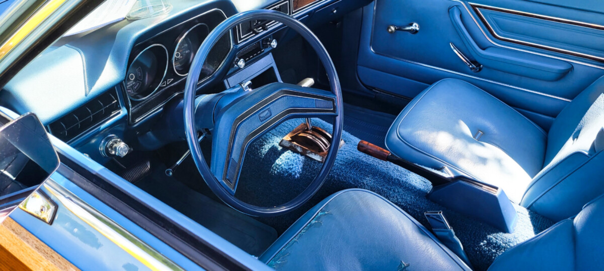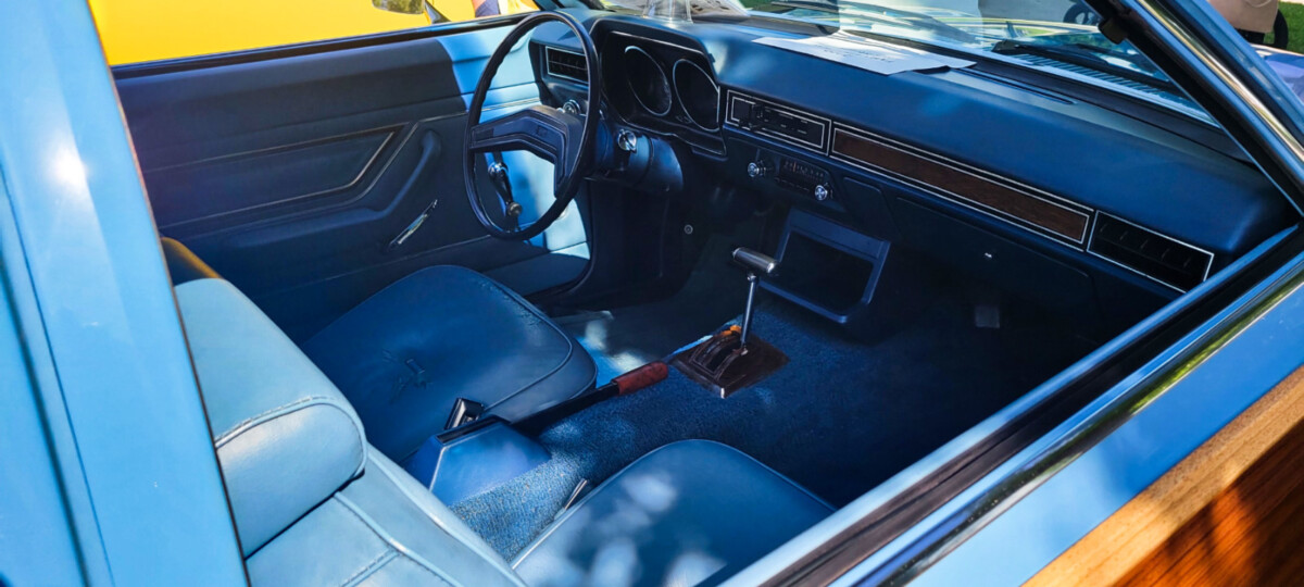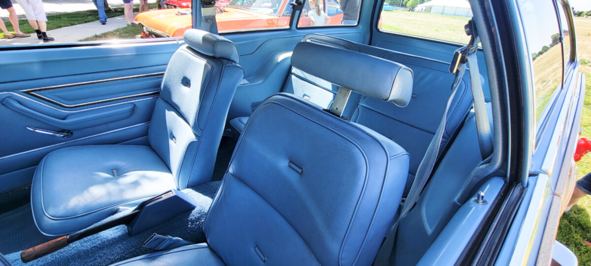 It isn’t every day that you see a Pinto with just 36k miles, especially a Squire, that’s in exceptional condition like this. My three-year-old was a bit confused by my excitement for this blue wagon, well at least not at first. He wanted to look at the bright red Corvettes, while my wife and two-year-old wanted to look at the yellow Thunderbird that they thought looked kind of like my Bugeye Sprite. Once my three-year-old saw the “wood” on the side of the Pinto, he become very interested in it. The fact that it was one of the few cars that got me excited enough to pull my phone out to take pictures might have helped pique his interest. He wanted so badly to climb into the soft blue interior, but the owner wasn’t around, so unfortunately he didn’t get to experience it firsthand. That’s alright though, I wouldn’t have actually let him climb into a survivor like this, at least not without wrapping him in bubble wrap to ensure he didn’t damage anything.