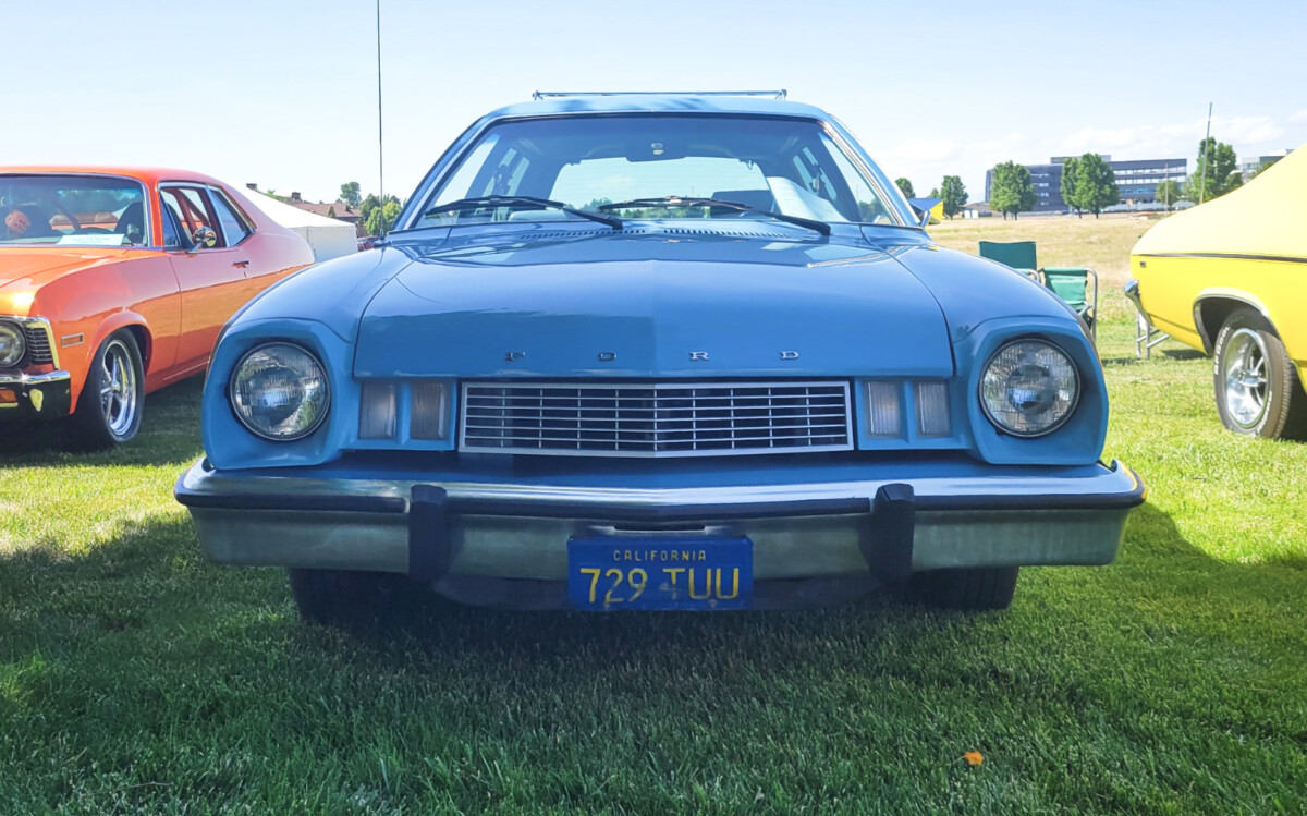 A printout in the window claimed that the car has 36,825 documented miles and that it’s a two-owner car. It still wears its California blue plates, with an Idaho registration sticker in the window. After looking it over as closely as I could without opening the doors, I didn’t see any signs of restoration work. Of course, why would anyone restore a Pinto when you can buy a nice one fairly cheap? I spotted a couple of small touch-ups to the paint and the driver’s seat has a tear in it, but overall, this Pinto appears to be in exceptional condition.