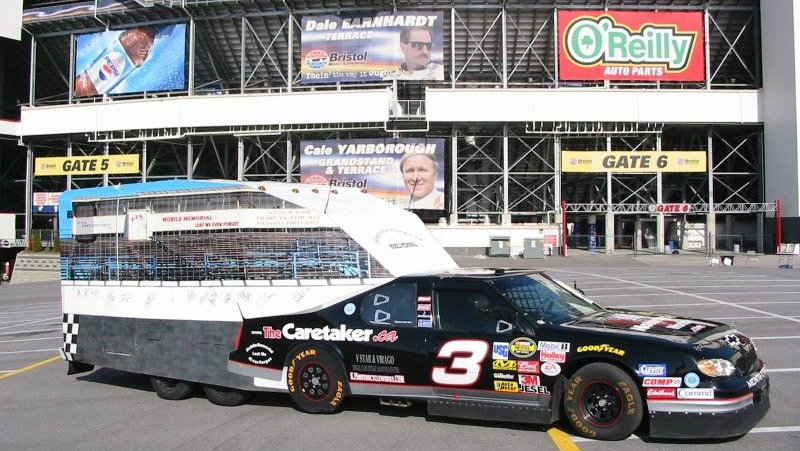 I figured a vehicle like this one would have an interesting history and I was determined to find it (as there is little in the original ad listing). I learned that Ken essentially created a mobile museum in honor of drivers and other racing personnel that lost their lives racing. He called his website and personna “The Caretaker” (the site is now down, but I was able to find some info here on the Wayback Machine). This must be an early incarnation (see what I did there?) of the vehicle as it doesn’t have the website listed and wasn’t using the iconic Earnhardt #3. The picture at the top is a later one, I believe. The only other mentions I could find of this unusually rolling museum were on a Subaru forum where someone had seen it and by NASCAR commentator Claire B. Lang, who mentions it at the bottom of a blog post here.