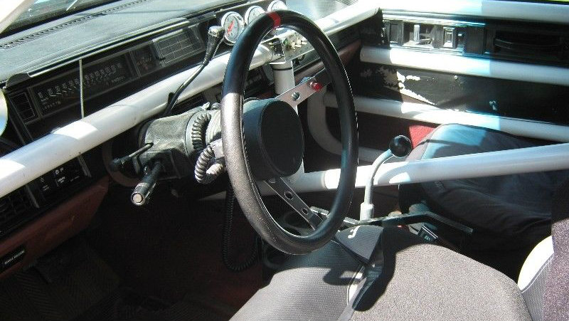 Inside, we have a NASCAR-style wheel and what looks to be a full roll cage.