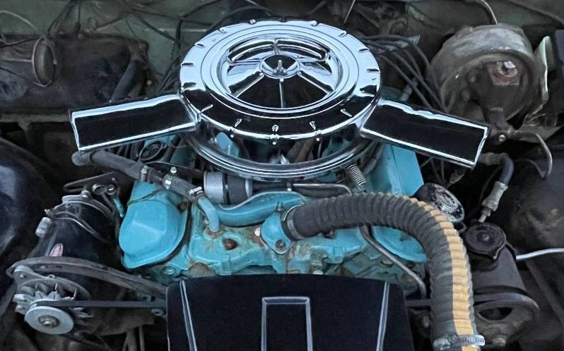 The seller states that the engine in this Safari wagon has a four-barrel carburetor so I’ll go with the assumptions that it’s a 300 gross HP, 389 CI V8. That non-stock, dual inlet air cleaner is impressive looking and if it is genuine, it’s valuable. An automatic transmission means a Hydramatic but unfortunately, there is no word regarding this Safari’s operational capabilities. This one still runs on generator power and that piece appears to be a recent swap.