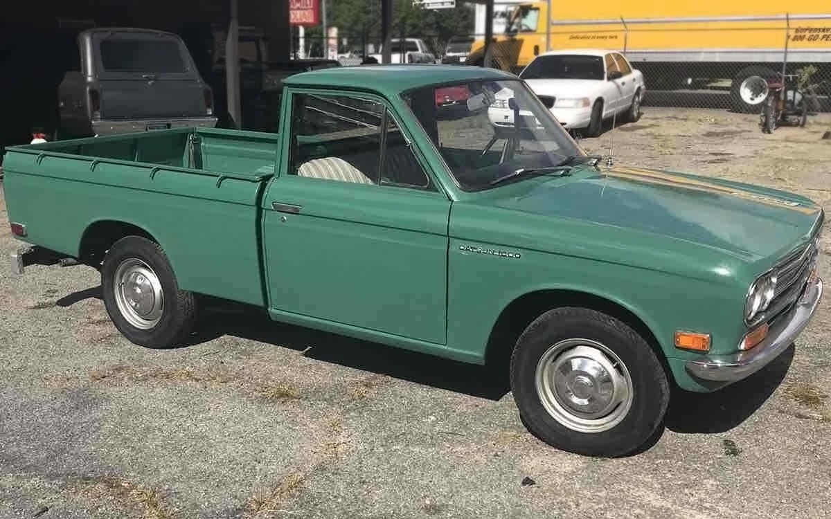 Not every “barn find” was found in a literal barn, it’s a term to denote that a vehicle was discovered after being parked for months or years. Just like a new Mini Cooper is much bigger than the original ones were and a person doesn’t have to ford a river just because they own a Ford. This 1971 Datsun 521 pickup was parked under a carport for 25 years and it can be found here on eBay in Statesboro, Georgia. The bid price is $3,850 and there’s still a day left to get your bids in.