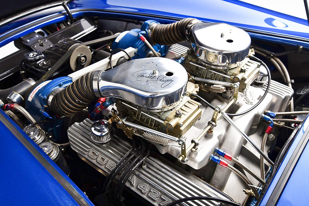 So, what exactly is under the hood of this Cobra? Well, to start, it’s not your run-of-the-mill Ford 427 V8. It was reworked for use as a competition motor, as this car started life as an all-out race car. It actually toured England as a Competition model for promotional events before being sent back to the States where it was converted to a street-legal car. Carroll’s friend Stan Mullin owned a Ferrari at the time and Shelby wanted a car that could absolutely leave Mullin’s car in the dust, so he apparently had his buddy Joe Granatelli at Paxton Superchargers send over a pair of superchargers for the car. You read that correctly, a pair!
