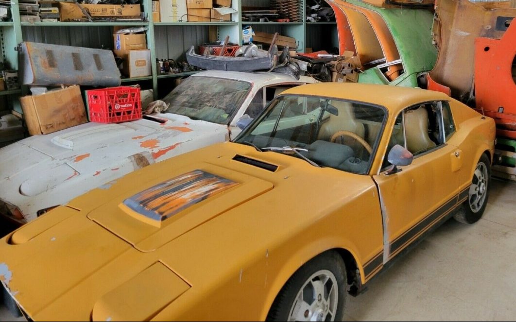 The seller uses exactly five words to describe this ensemble: “two Saab Sonetts and parts.” What we see here is a yellow car that might be running or not far from achieving that. The second auto looks more like a parts vehicle in primer grey. We’re not given any specifics about either vehicle, but the garage is loaded with extra parts, doors, roofs, and a pyramid of stuff you’d need to rebuild one or both of these automobiles – and have stuff leftover.