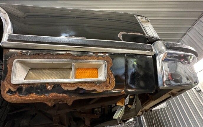 The corrosion around the right front lamp is likely battery acid where a boil over occurred or simply ran down the side from lack of maintenance and cleaning. The infection is directly underneath the battery here. Batteries back then weren’t the same quality as the ones we have now