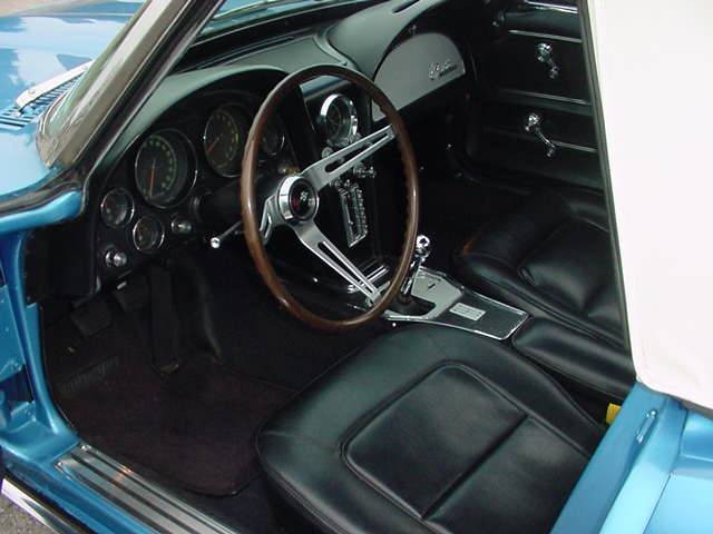 Also, it’s the standard walnut grain plastic steering wheel, a very handsome wheel but darker and without the 9 seams in a real teak wheel. A few days ago I posted a pic of the original teak wheel in my ’66 427 coupe.