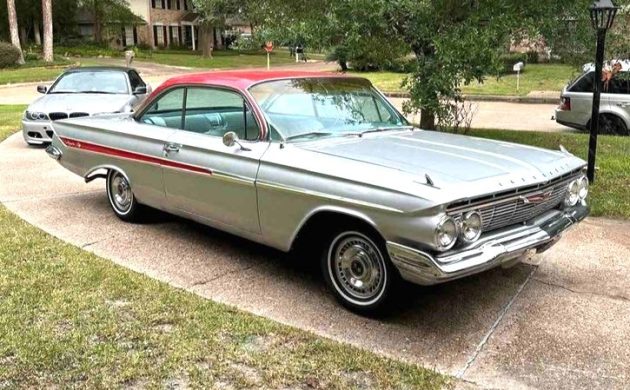 Chevrolet did an extreme makeover on their full-size cars in 1961, coming with crisp, rounded styling compared to the “batwings” of 1959-60. This ’61 Impala has the desirable “bubbletop” roofline, which would be the last for the model, switching… more»
