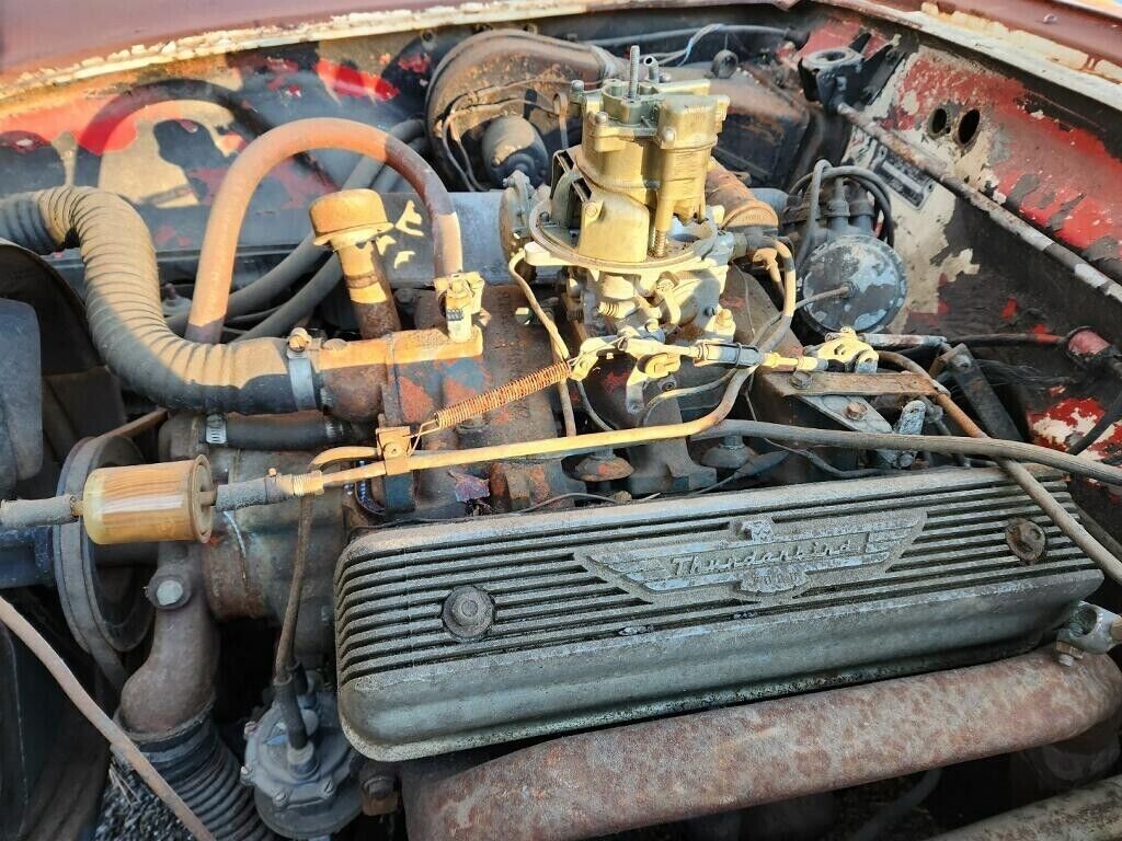 The Thunderbird recently emerged from its slumber, and the time in storage hasn’t done it too much harm. Someone applied red primer over its original Snowshoe White paint, but it doesn’t appear to hide any nasty surprises. The panels sport a few bumps and marks, but none look irreparable. Encouragingly, there is no evidence of penetrating rust. The seller states the floors, trunk pan, and frame are rock-solid. However, the photos suggest the presence of significant surface corrosion, and the most effective way to tackle this would be if the buyer performs a frame-off restoration. The fender skirts and factory (non-original?) hardtop show no issues, but the car needs new bumpers. The remaining trim looks fine for a driver-grade classic, and the glass is spotless.