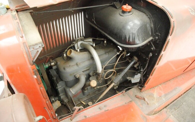 Interesting car, especially the color. I don’t think I’ve ever see an orange from then if it’s original. It actually looks pretty complete. They don’t say if the motor is free. Parts for that drivetrain would have to be made?