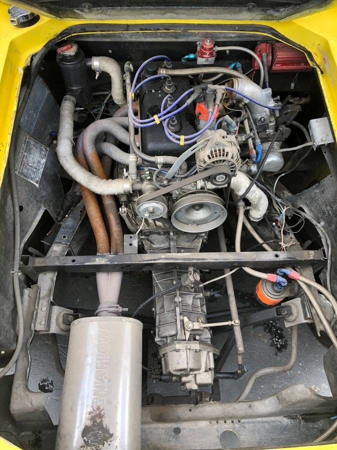 The engine is not stock, but a higher performance unit from a later car…with the headers and a different fuel system.