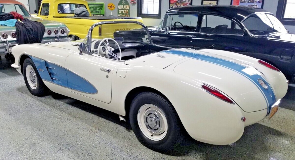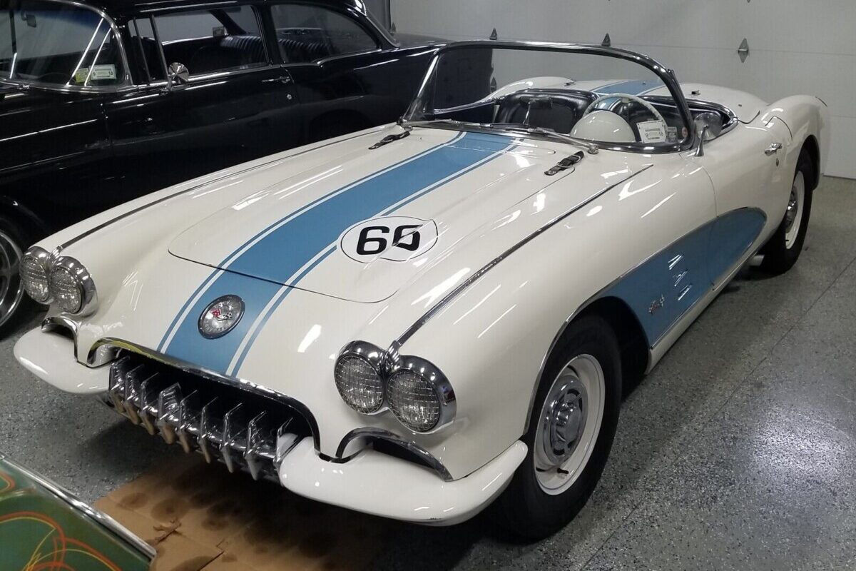 The seller indicates this Corvette received a frame-off restoration around ten years ago, and it still presents well in its combination of Ermine White with Horizon Blue coves and stripes. The stripes are painted, but the simulated race numbers are decals the new owner could remove. They aimed to create a road-going race car look, with the impact helped by the numbers and the leather hood straps. If the car has been appropriately stored for the past decade, it should mean the frame is rust-free. The lack of visible corrosion across other aspects of the vehicle tends to support this, while a fold-down top should offer weather protection if things turn nasty. The trim sparkles impressively, while the stainless headlamp protectors are a nice period touch. The ‘Vette rolls on wider steel wheels with spotless hubcaps, and the glass looks flawless.
