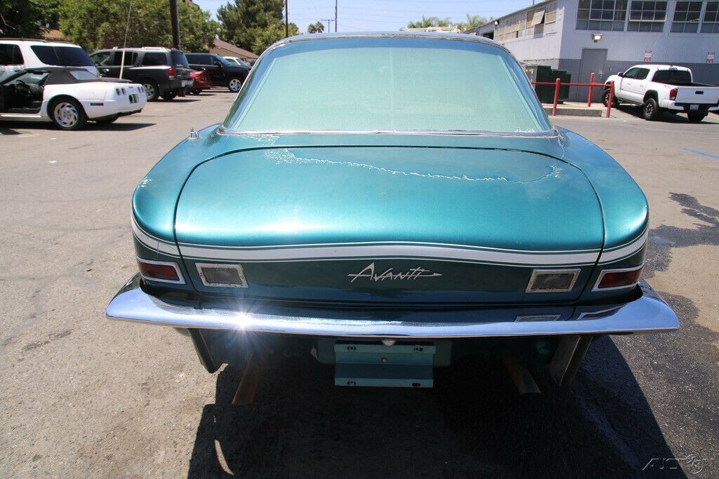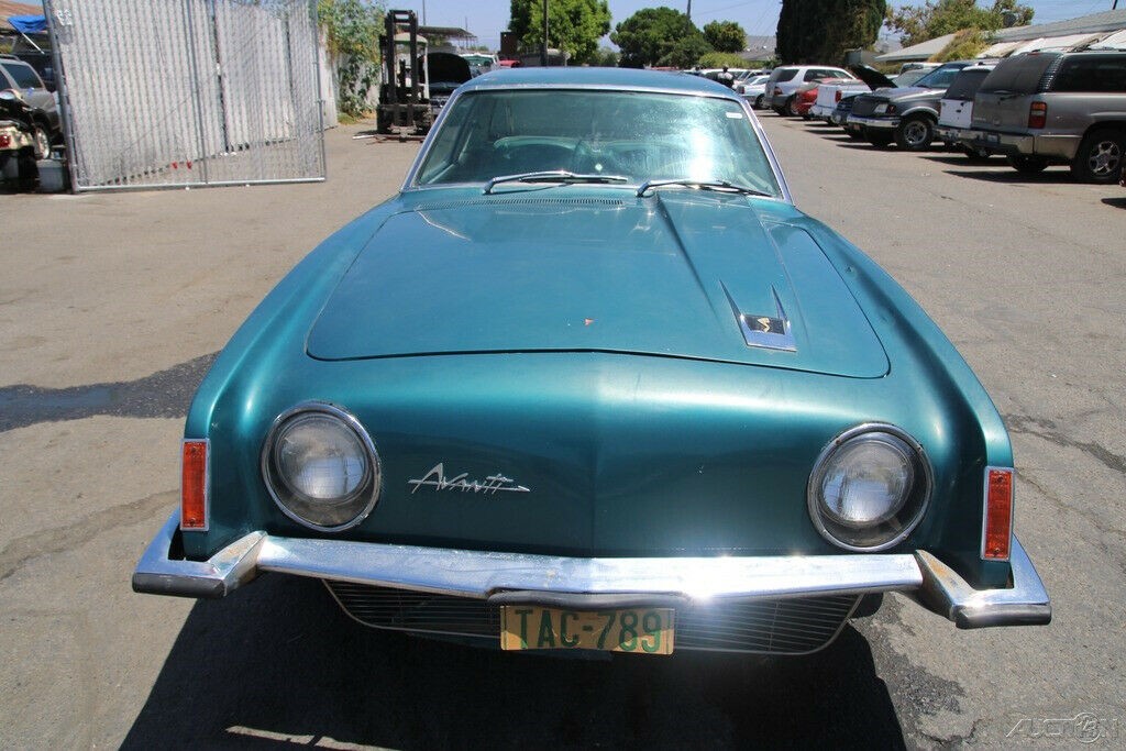 Since there is no supercharging apparatus under the hood, this has to be the stock 289 cubic inch V-8 hat would have output 240 hp with a four-barrel carb. It has the automatic transmission rather than a 4-speed which suggests this Avanti was purchased for cruising, not for speed. The car is categorized as a non-runner because the fuel pump is thought to be broken and you can only start it with a bottle of gas. The battery is also toast, but the auctioneers have said they used a temporary battery for testing purposes.