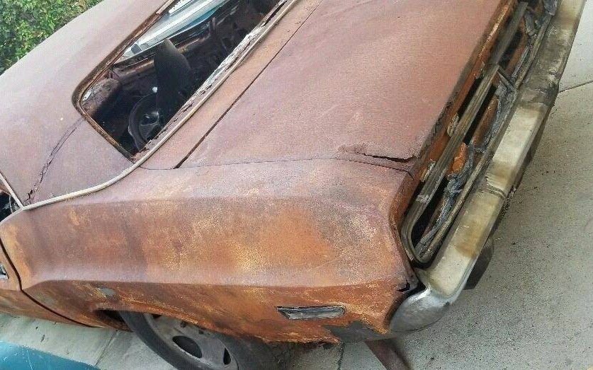 Jim, you described this mess perfectly, as the “Plum Crazy Project”, because that’s what you would have to be to buy it. It was pretty much a rust bucket before the fire anyway. It should continue on it’s way to be melted down to something useful. It never fails to amaze me the depths a seller will go to monetize something that has no value whatsoever, but I guess they live by the old saying “There is a sucker born every minute!”