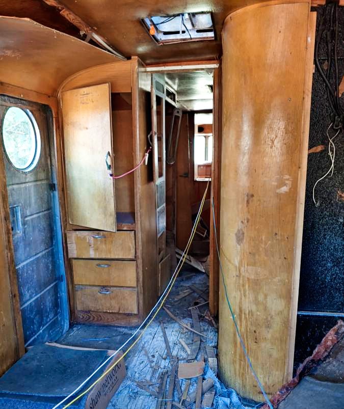 As you can see, the interior is going to need a full restoration, but it appears that much of the original cabinetry is present. There is going to be a fair amount of woodwork required, but at least you will have the original panels to work from. One perk of buying one in this kind of condition is that you can customize it without having to feel bad about it. With some modern touches, this could be a really comfortable trailer to spend time in!