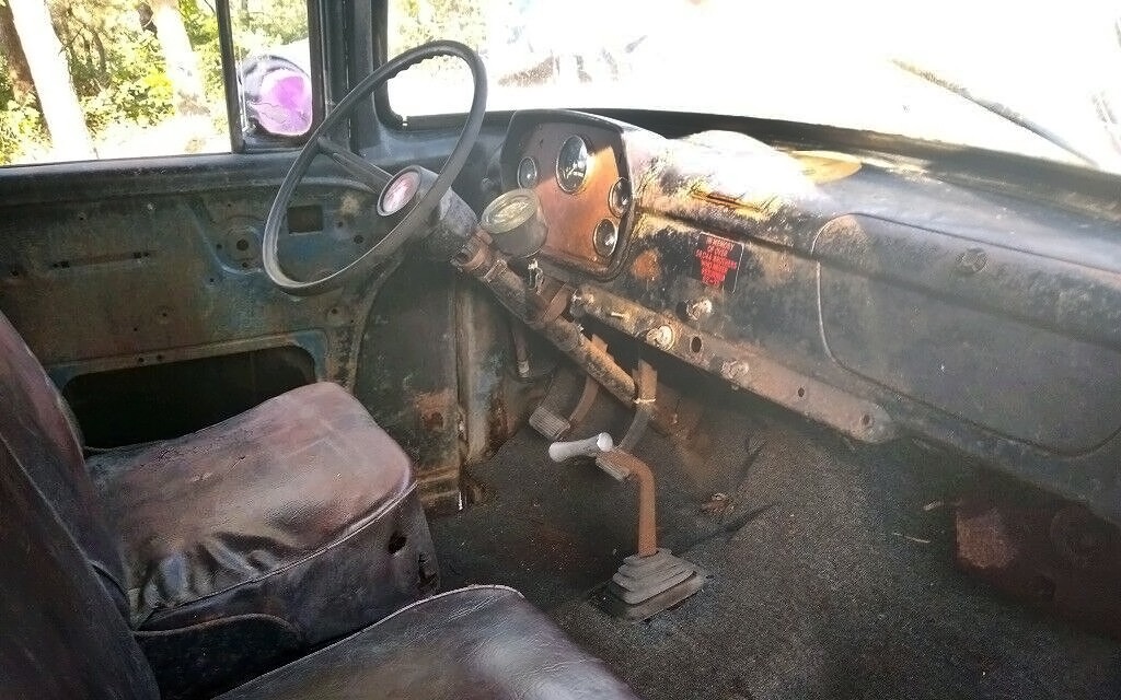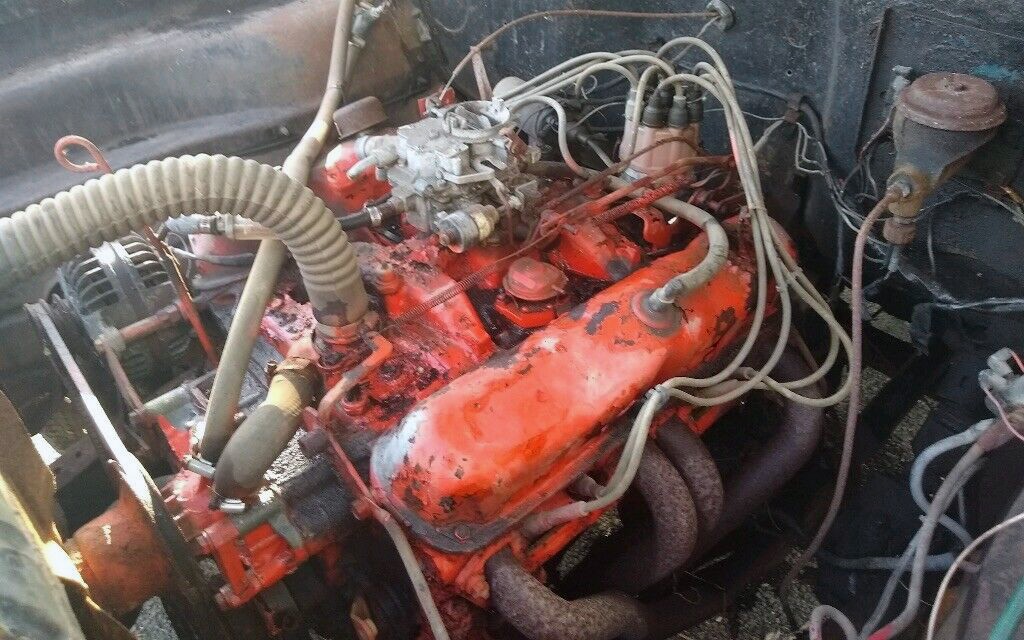 The engine is a 360 cubic-inch V8 and it runs with gas in the carb but that’s usually code for needing-to-have-the-fuel-system-gone-through. Just add it to the list of items to fix. It sure would be fun to have it in working condition and pick away at it as time and money allows.