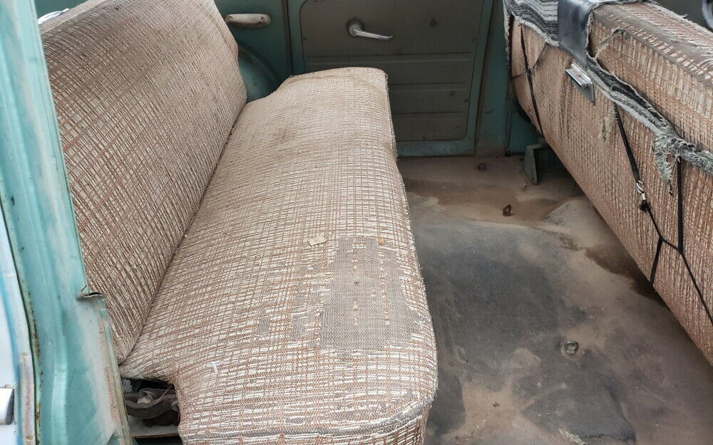 The back seat looks pretty good, relatively, but some seat covers would do wonders. The interior is simple and un-padded enough that once the front seat is fixed and the rest of it is cleaned up, it’ll look great. Once you’re ready, you can find new flooring material, both rubber and carpet.