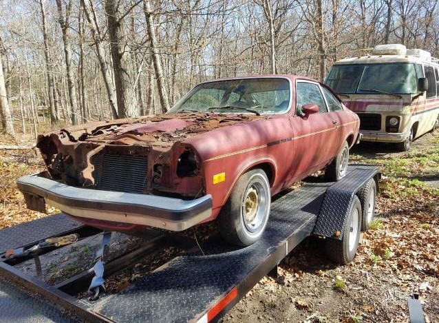 The car on the trailer in the photos should be the Cosworth, with the one sitting on the ground being the parts car. The seller says his car is # 2865 of all the Cosworth Vega’s made. We’re told the car is rusty and all there with just under 43,000 miles since new. The body on the parts car looks better, so the buyer will find himself transferring parts from one to the other. Apparently, the seller has been in possession of the car since 1987, so we assume he lost interest in restoring this car himself a long time ago. Both cars carry the same paint color, Firethorn Metallic, with a Buckskin interior, which was new to the Cosworth Vega for ’76.