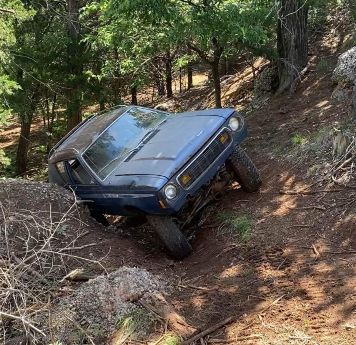 The impression I got from the first photo was the car got stuck in a ditch and the owner said ‘The Hell with it. I’m taking a pic and selling the damn thing!’